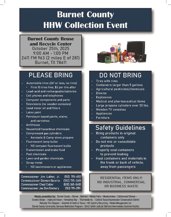 October 25, 2025 Burnet County Hazardous Waste Collection